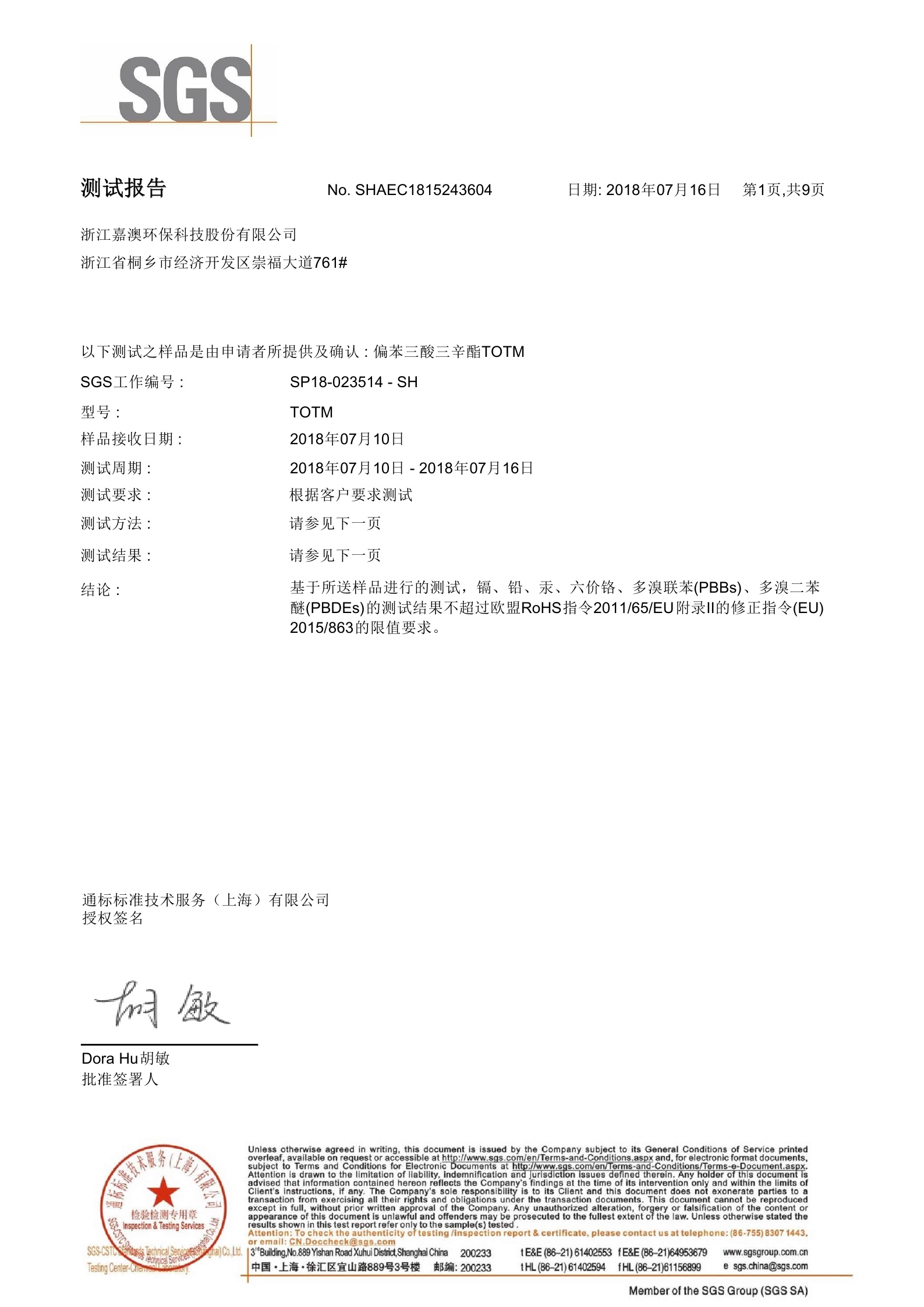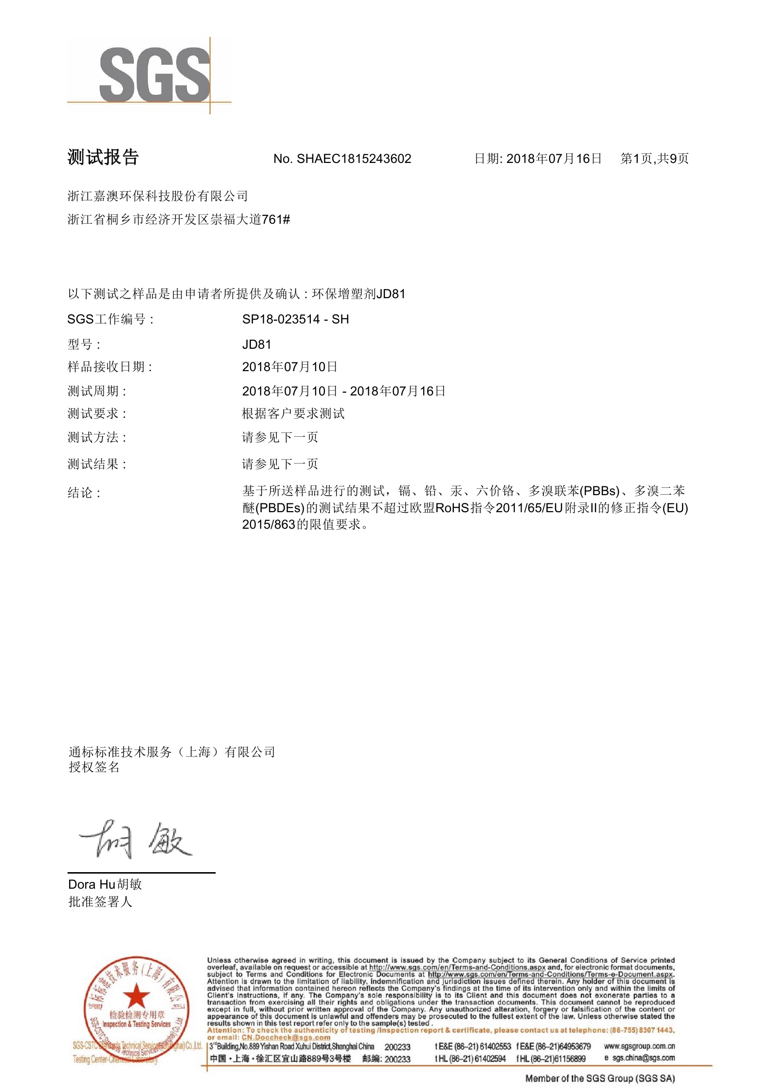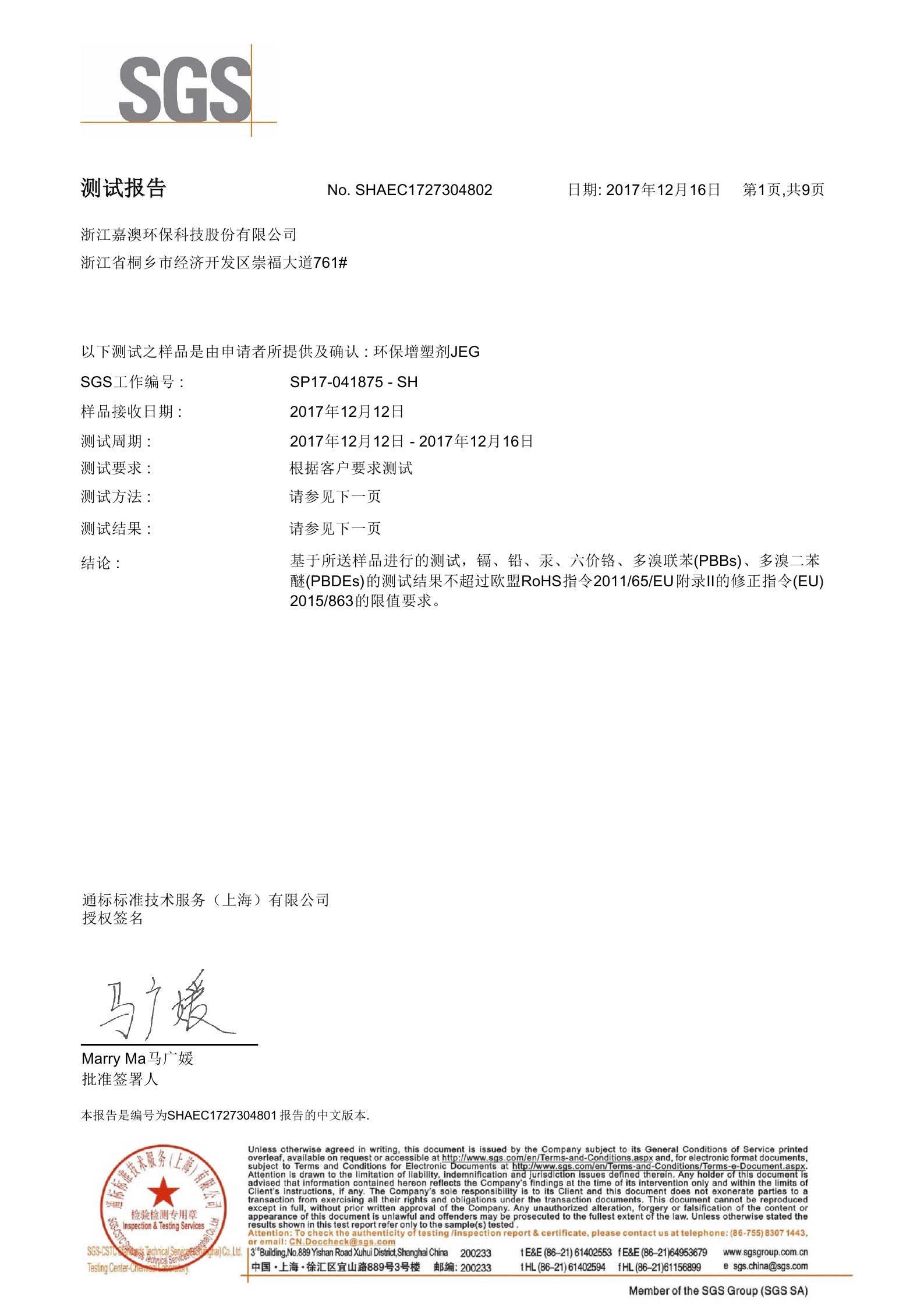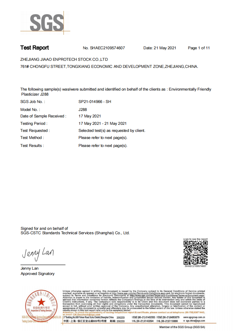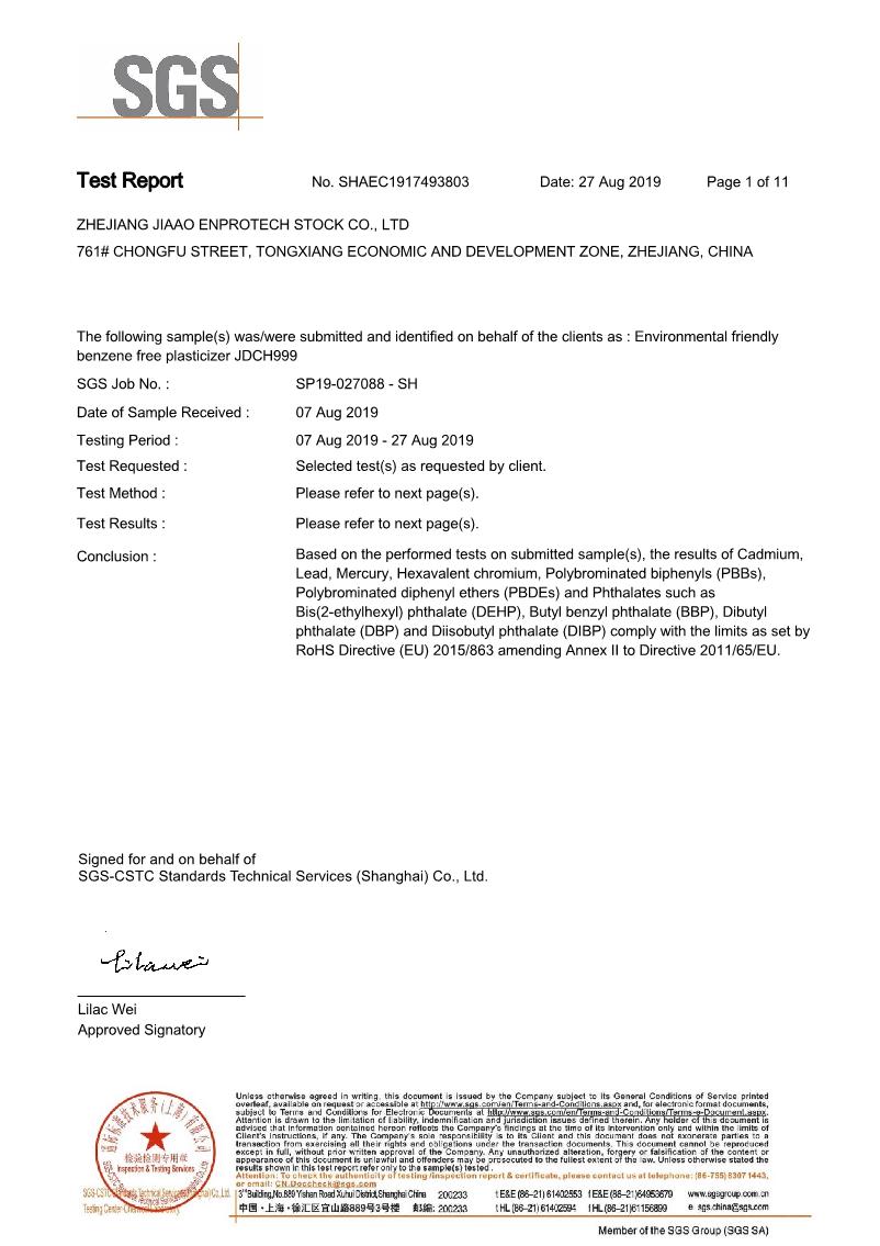 环保增塑剂JEG1-33Ⅱ型通过SGS测试2