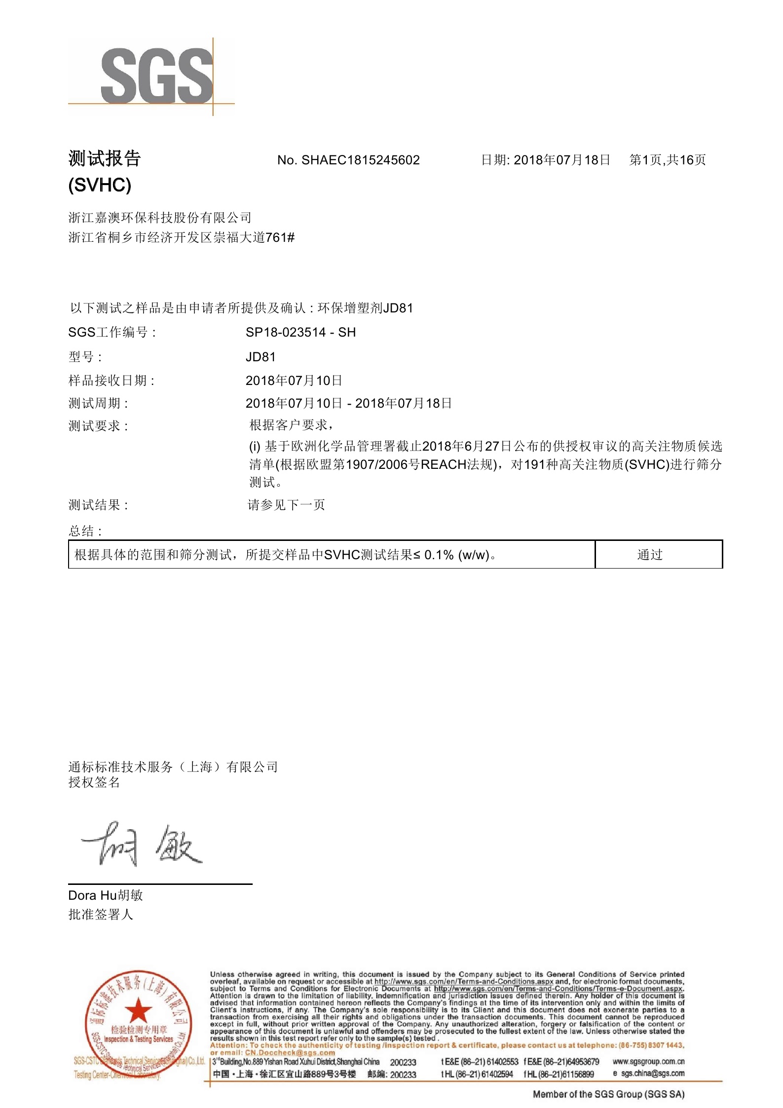 JD81通过SGS测试1