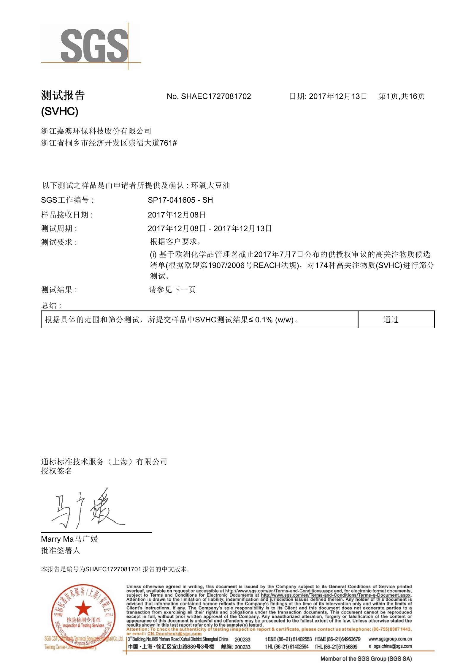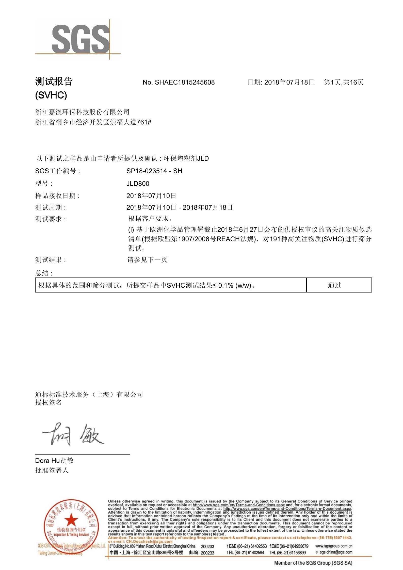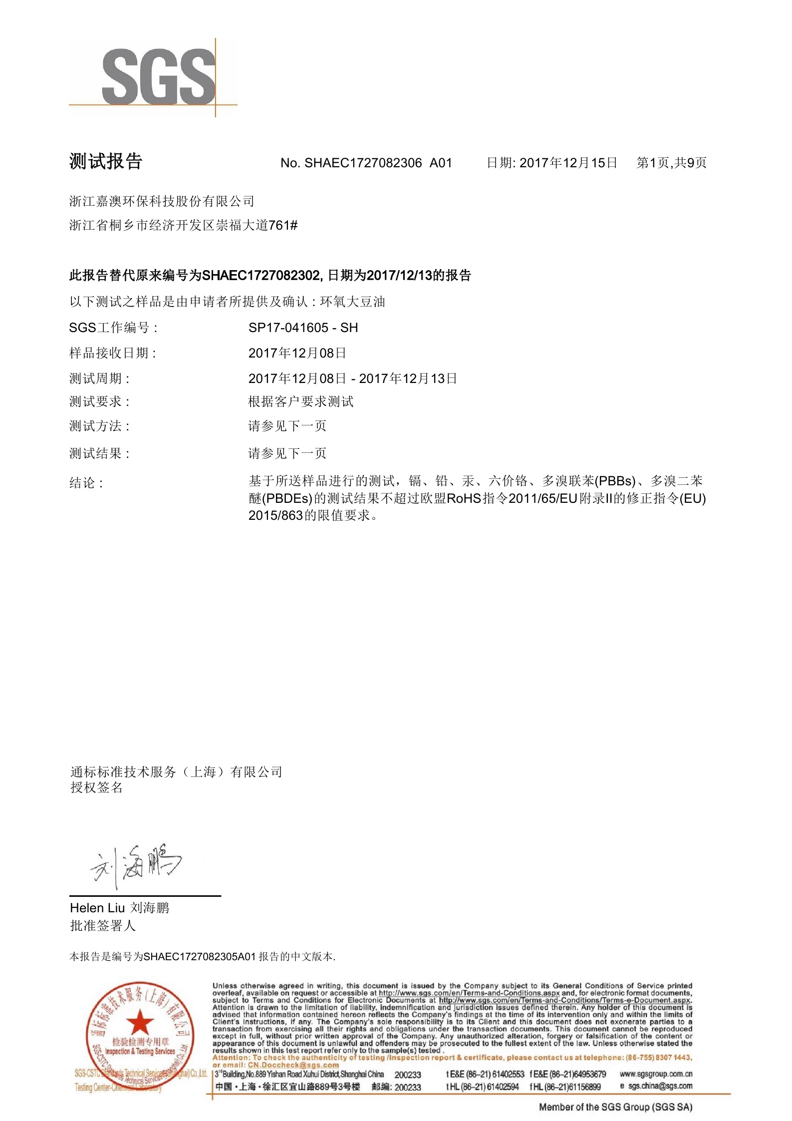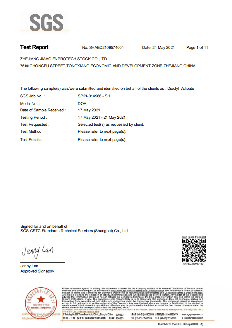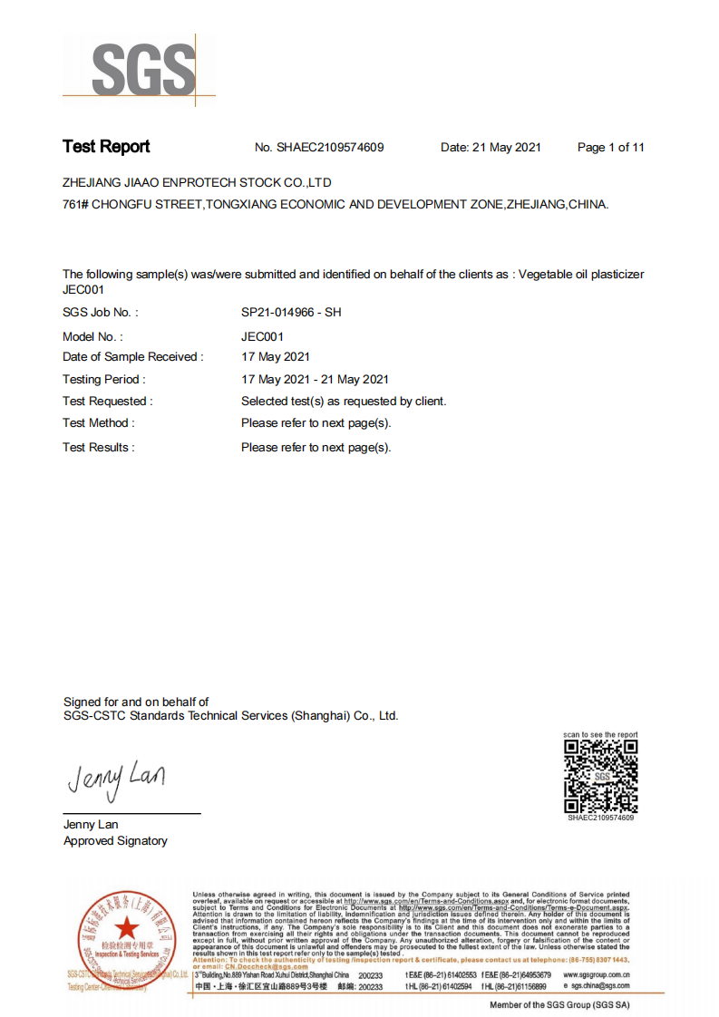 环保增塑剂JEG1-33Ⅱ型通过SGS测试1