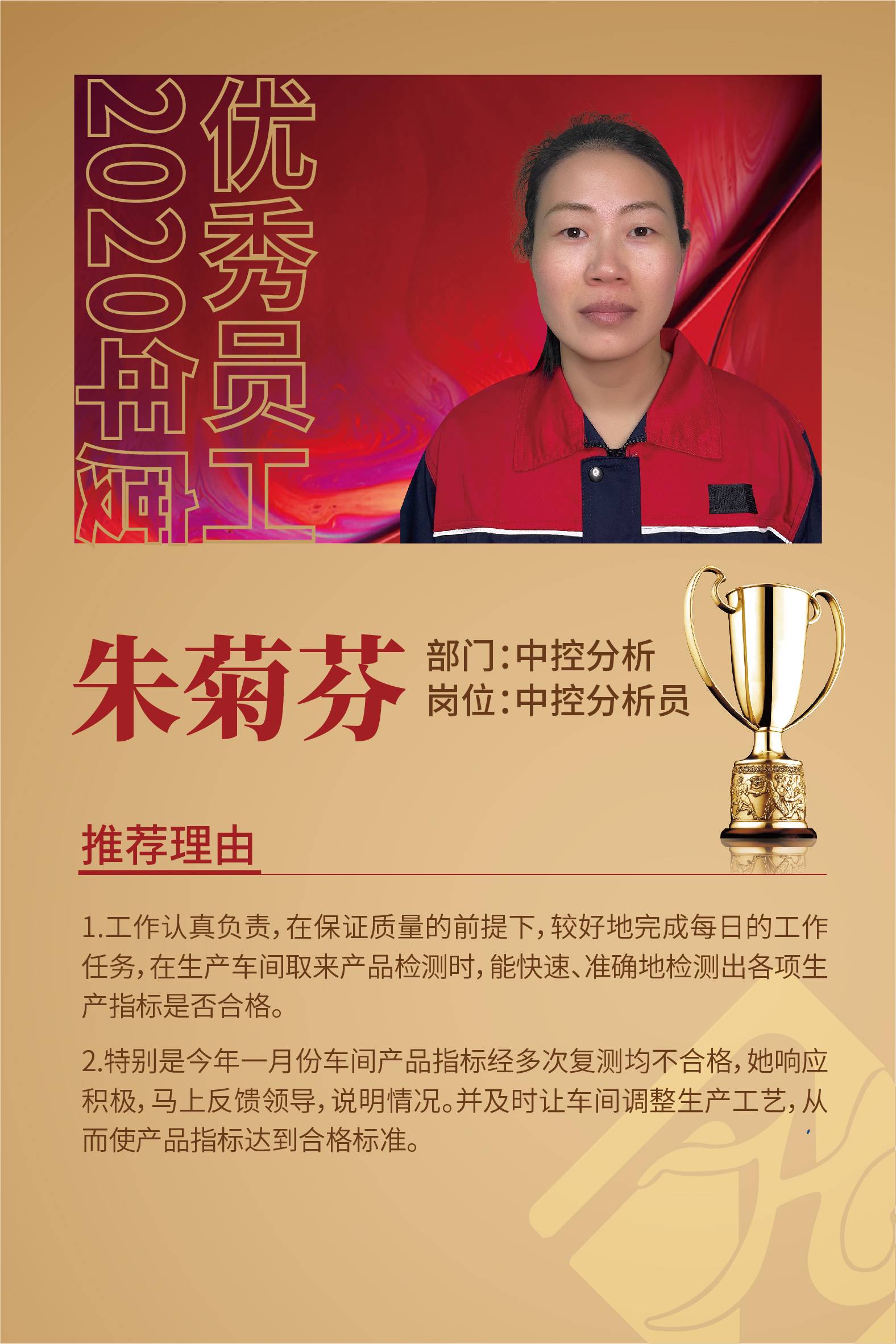 2020年优秀员工--朱菊芬