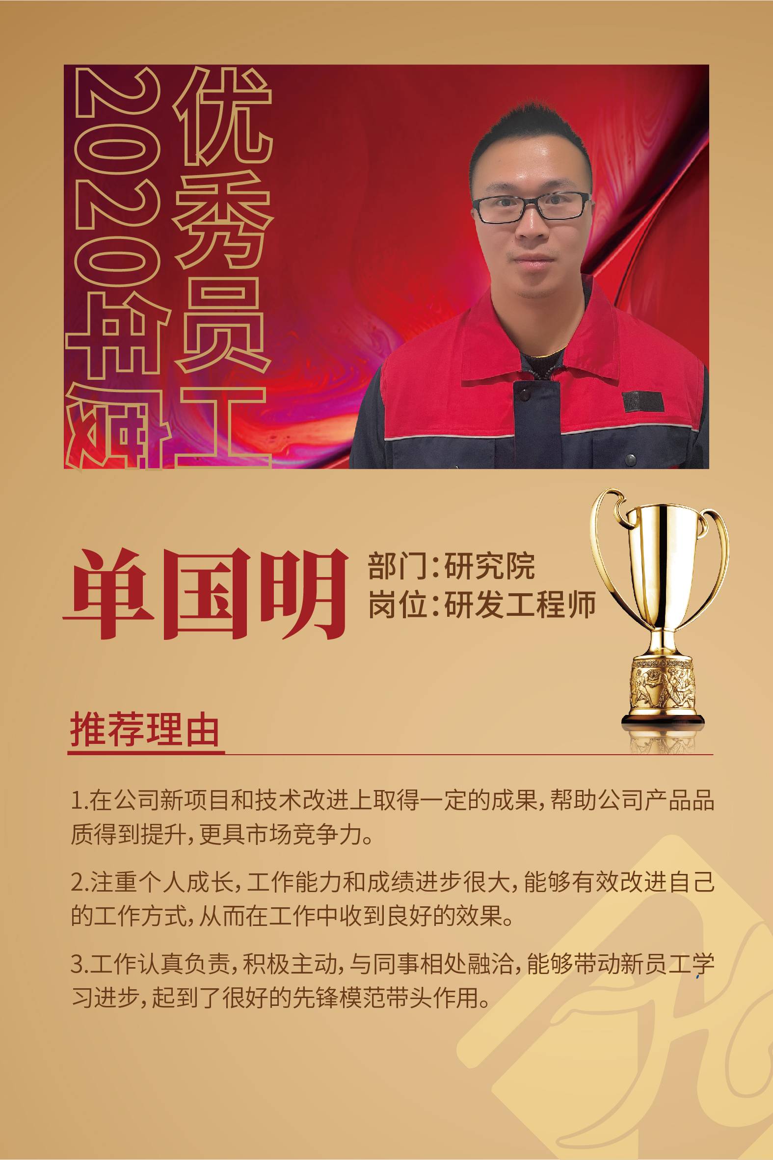 2020年优秀员工--单国明